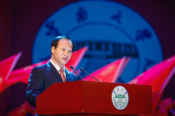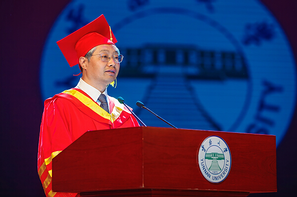 林文勋在典礼上代表学校为全体毕业生们上了在云南大学的最后一课,并提出了语重心长、情真意切的希望。林文勋回顾了四年来学校建设发展所取得的成绩,表示这些成就的取得,凝聚着全体毕业生的智慧和汗水。面对即将走向社会的毕业生,林文勋希望他们用大学传授的知识和方法,秉承“自尊、致知、正义、力行”的云大校训和“会泽百家、至公天下”的云大精神,不断继承和发扬批判精神、独立精神、兼容并包精神,拓宽视野、放大格局、勇于担当,迎接新的挑战。他勉励毕业生们在未来的道路上磨练意志、坚持学习、脚踏实地,去开启人生新的征程。坚持理想,砥砺前行,在前进的道路上坚定信念,不会迷失方向;坚持理想,砥砺前行,在遇到困难的时候,迎难而上,勇往直前;坚持理想,砥砺前行,让人生道路越走越宽广。林文勋相信全体毕业生一定能够不负母校厚望,一步步把理想变为现实,敢于担当起国家赋予青年的使命,创造无愧于时代的人生。