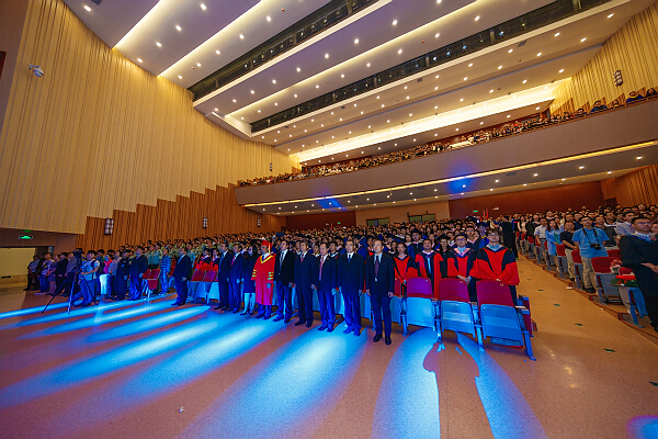 典礼在全场齐唱中华人民共和国国歌声中拉开帷幕,大屏幕上播放的毕业纪念影片,让全场观众在12分钟内回顾了云南大学九十多年发展的历程,倾听了老教授、老专家对莘莘学子的谆谆教诲,一同分享了毕业生代表在临别之际对未来生活的期望和对母校的依依不舍。