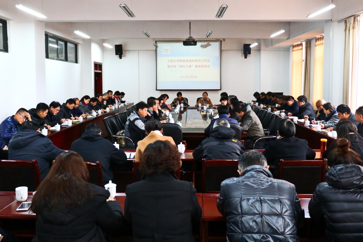 1月4日下午,云南大学院级党组织书记工作会暨学院“师生之家”建设现场会在呈贡校区召开。校党委副书记张昌山,校党委常委、纪委书记陆琴雯,院级党组织主要负责人及相关部门负责人参加会议。