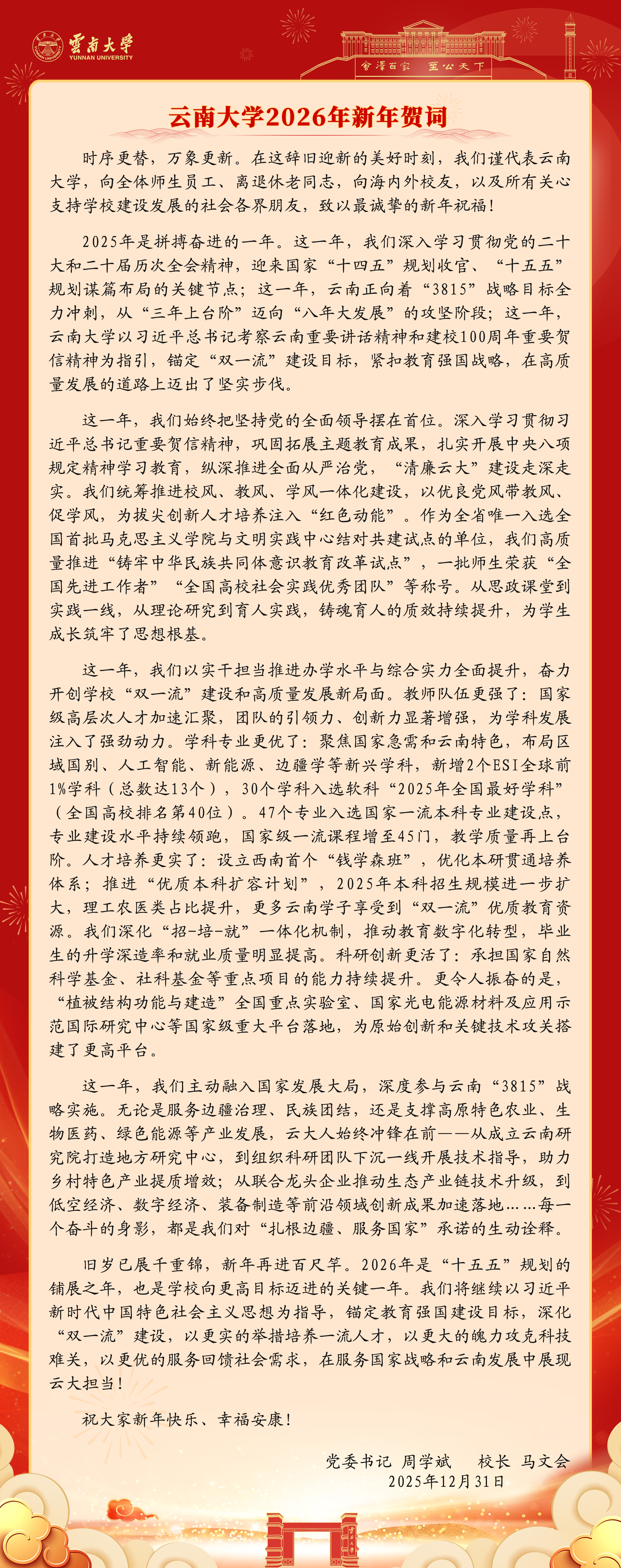 云南大学2026年新年贺词