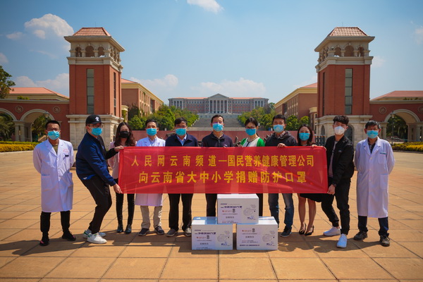 4月1日,人民网云南频道携手国民营养(北京)健康管理有限公司向云南大学捐赠了5400只一次性防护口罩,积极助力我校春季学期疫情防控工作。