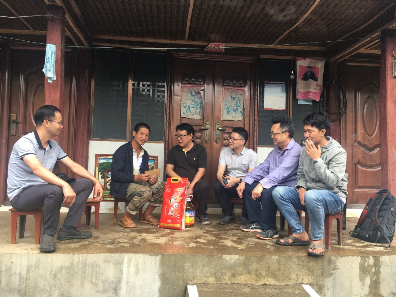 在河边村,回访组带着慰问品和慰问金冒雨分别前往挂钩帮扶的贫困户李朝师、李印家中走访,实地查看两户的生活条件,与两户深入谈心交流,详细了解其家庭情况、身体健康状况、子女就学情况及生产生活中的困难和问题等,与其商量进一步完善脱贫措施。